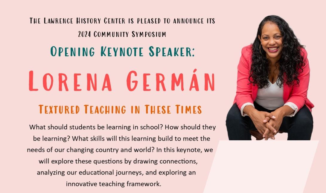 The Lawrence History Center is pleased to announce its 2024 Community Symposium Opening Keynote Speaker: Lorena Germán CLICK HERE FOR MORE ABOUT LORENA and the symposium!